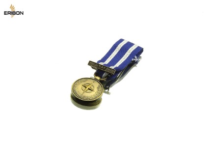 Miniaturka medalu NATO z okuciem ISAF, mocowana za pomocą podwójnej szpilki