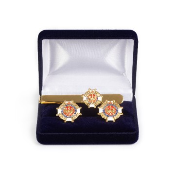 Spinki do mankietów i krawata OSP-pozłacane (złoto24 karaty) i malowane, w etui